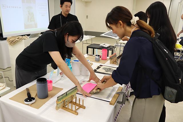 会期中のイベントとして、「セミナー&ワークショップ」を両日開催。会場一角に特設ブースを設け、生成AIと著作権をテーマにしたセミナーやシルク印刷のワークショップなどがおこなわれました。また、「人手不足問題」を解決する様々なソリューションを集め、業界に広く紹介する「人手不足を解決!」コーナーも。現場作業マニュアルを作成・共有できるシステムなどが展示され、自社の業務を見直したいと考えている来場者に好評でした。